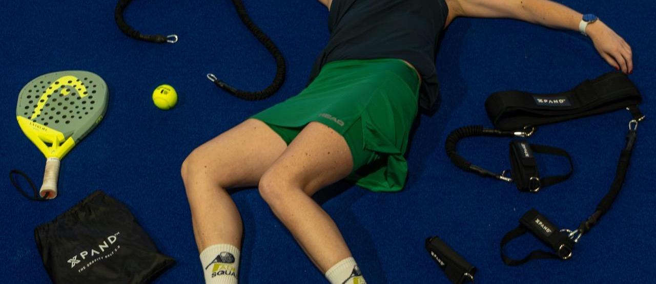 The Xpand Gravity Belt is a training tool designed to improve athletic performance, particularly in sports like tennis, padel, and pickleball. It consists of a waist belt with adjustable resistance bands that attach to the ankles.